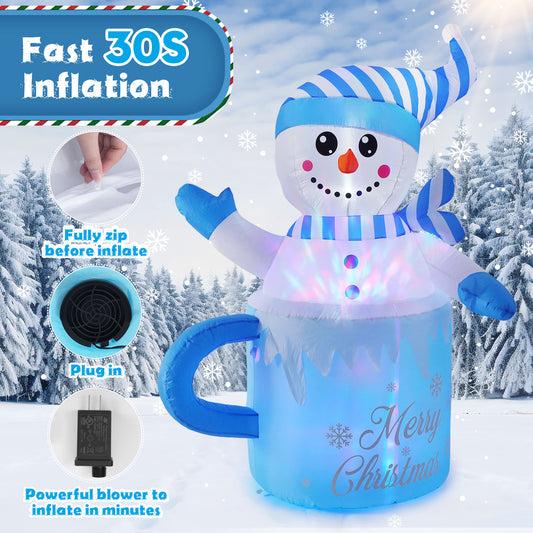 Aship 6FT Teacup Snowman Christmas Inflatable with Disco Lights, Outdoor Christmas Blow Up Inflatables Decorations Lighted Snowman for Christmas for Yard Indoor Outdoor Decor