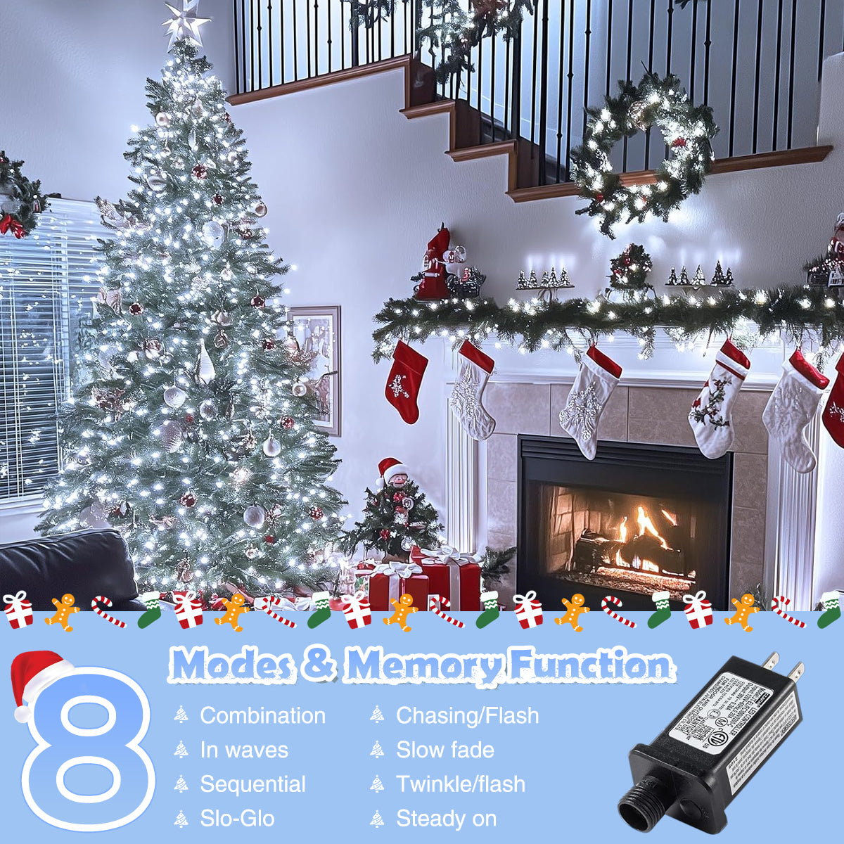 Aship 1000LED Christmas Light String, 82Ft Plug in Christmas Tree Lights with 8 Modes & Memory, IP44 Waterproof Indoor/Outdoor Decor for Holiday Wedding Party