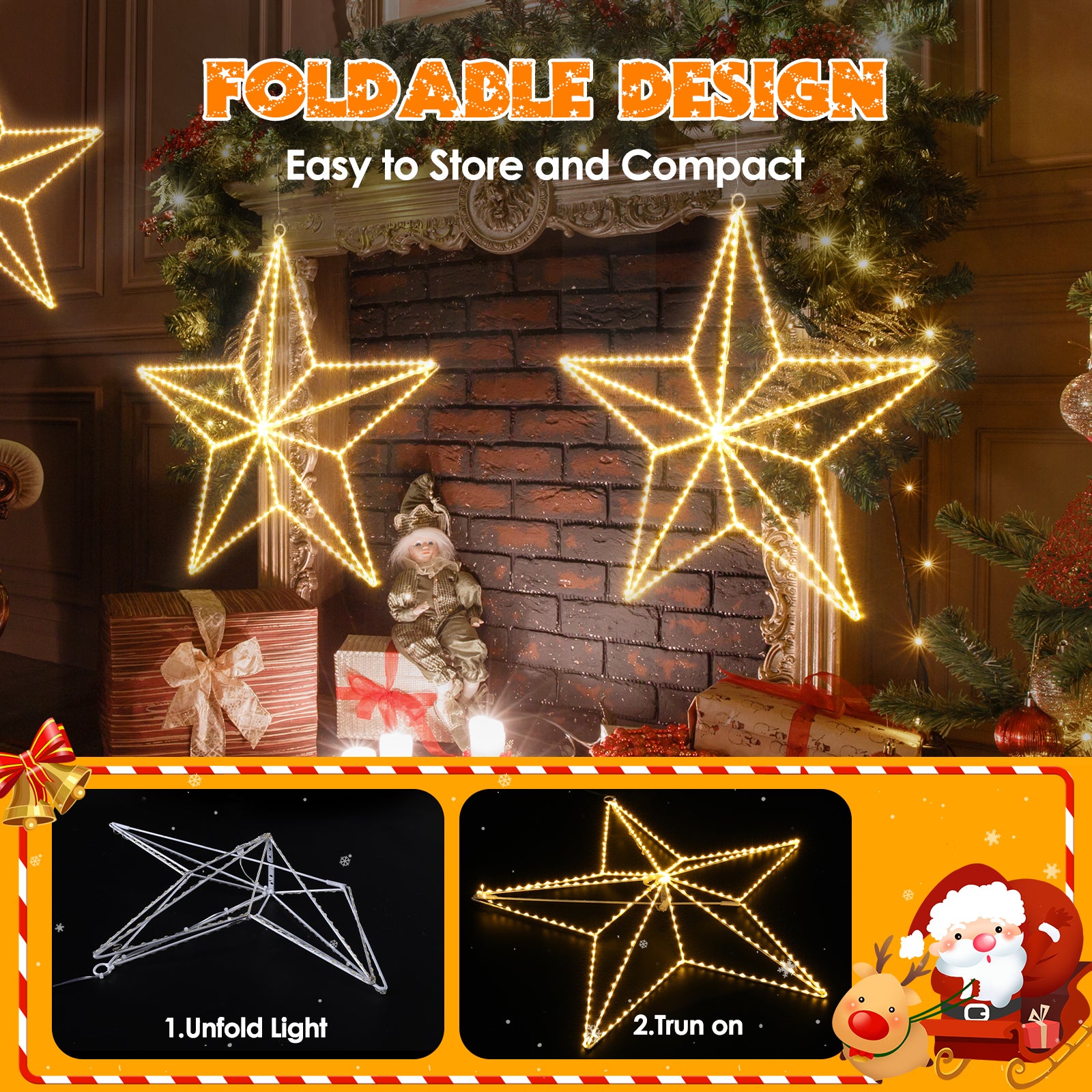 🎈🎈Wide Application: This foldable star light can be used to decorate windows, walls, and is a great addition to your room, porch, patio, balcony for Christmas, birthday, and other celebrations.