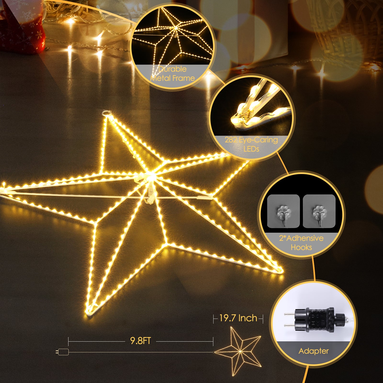 Aship 19.7in Christmas Star Lights, Plug In 282 LEDs Christmas Light Up Decor, Hanging Window Lights for Christmas New Year Holiday Wedding Party Decor, Warm White