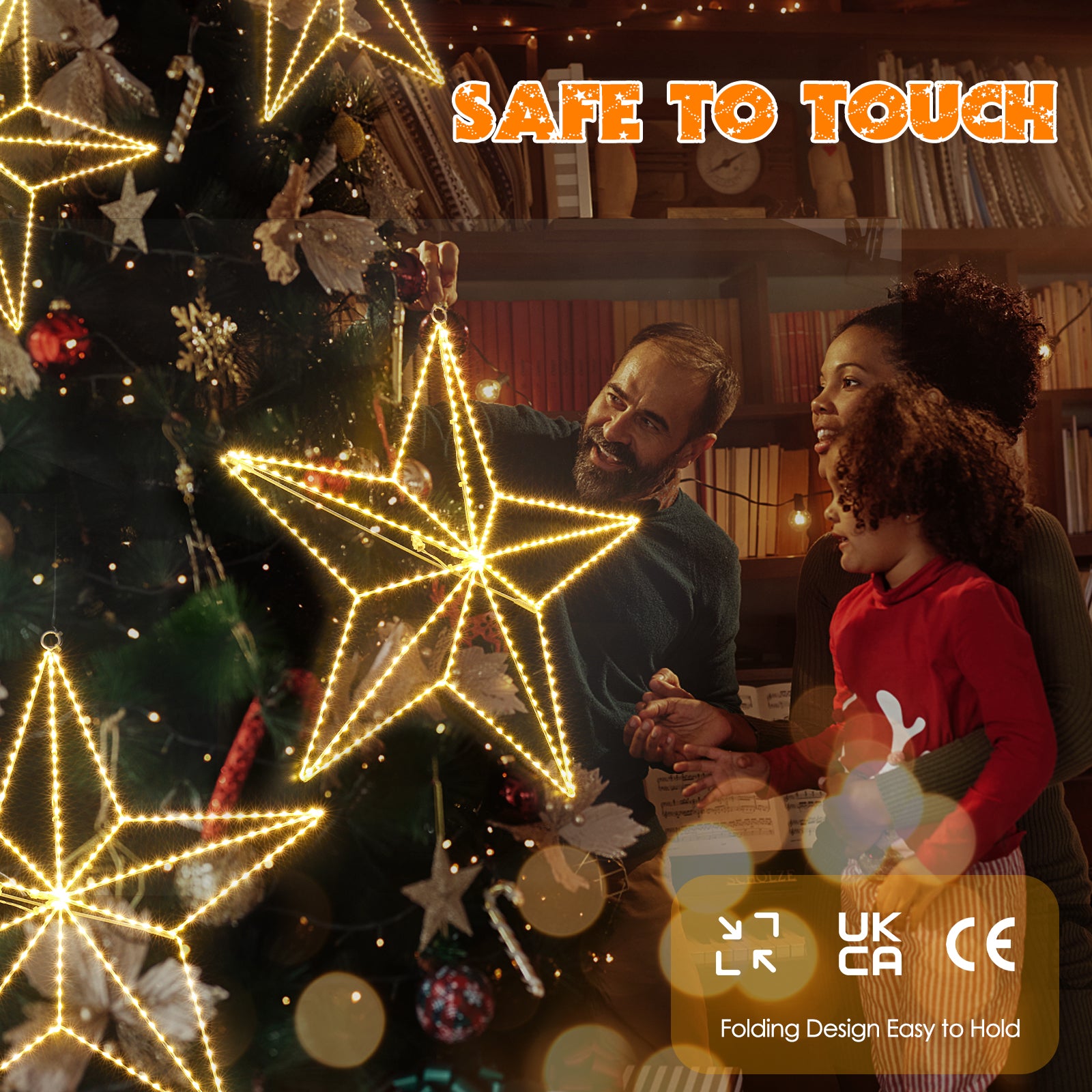 ⭐⭐282 Ultra-Bright LED Bulbs:The Aship star lights emit a warm white tone specially calibrated for Christmas, soft as candlelight and warmly subtle. With 282 densely packed LED bulbs, the abundant illumination is perfect for winter and festive seasons. An ideal indoor hanging decoration to enhance holiday ambiance.