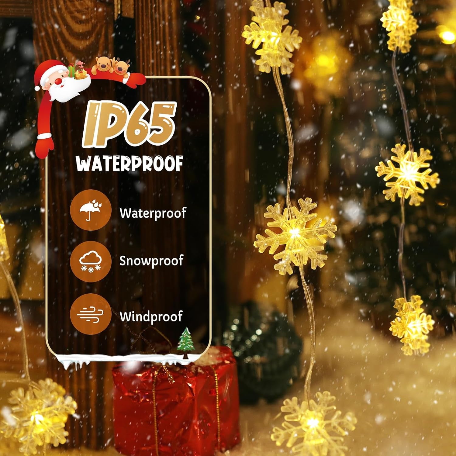 - 【50 Softly LED Snowflake Lights】 -- This charming Christmas window light set features 50 LED snowflake lights arranged in a gentle wave across 10 strings. The warm white glow creates a cozy, winter-friendly atmosphere, perfect for decorating eaves or brightening indoor spaces.