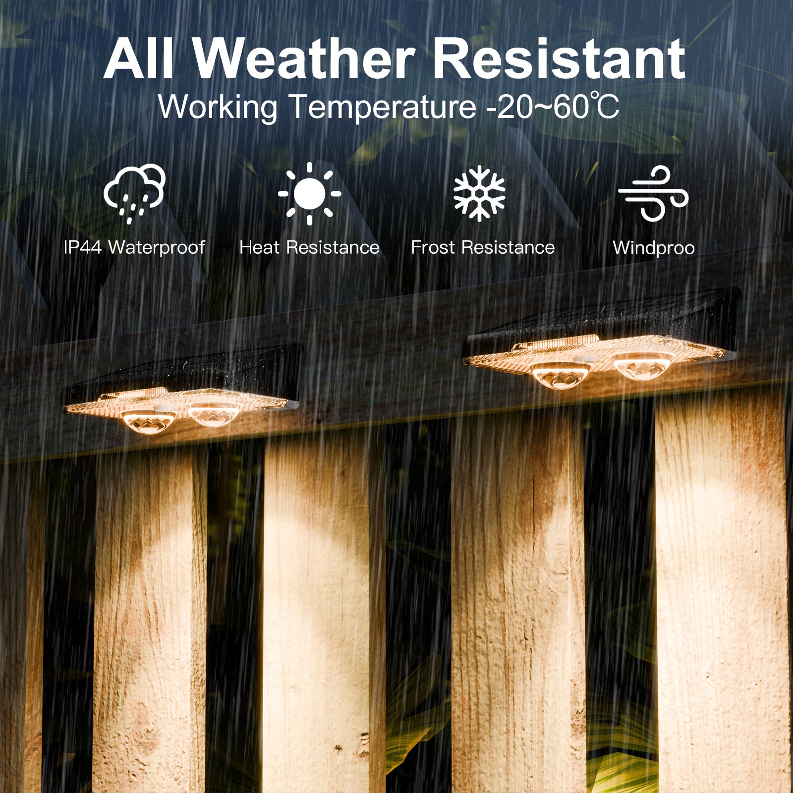 - 🌟🔋Smart & Energy-Efficient : Our solar fence lights feature advanced sensors and a high-efficiency monocrystalline solar panel. Once fully charged, these outdoor solar fence lights provide 8-10 hours of bright, warm illumination—perfect for gardens, decks, or fences. Automatically turns on at dusk, saving energy while lighting up your nights.